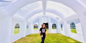 Our fully portable and inflatable 30’L x 20’W x 13’H Art Tent transforms any location into a creative celebration space! Space will accommodate up to 50 guests depending on seating requested.